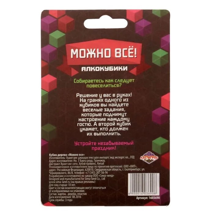 Купить кубик "можно все", алкокубики для принятия решений от 60 руб. с доставкой до пункта выдачи в Алейске. Интернет магазин ДекаМаркет. Оплата при получении.